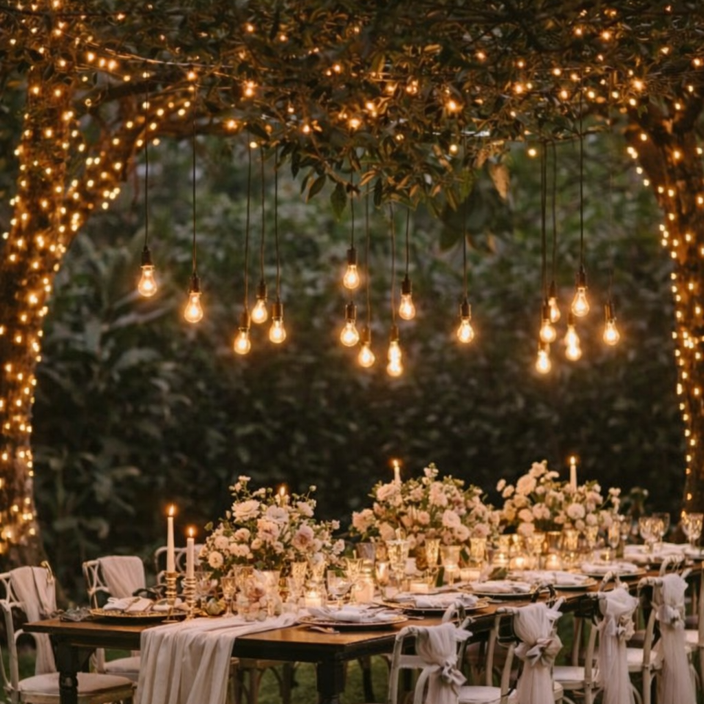 Lichterketten unter freiem Himmel